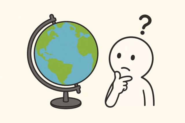 地球儀の座標(東西南北)は人間の直感とは関係なく、絶対座標として決まっているので、地球の裏側に移動しても”左右反転”という現象は起きません。